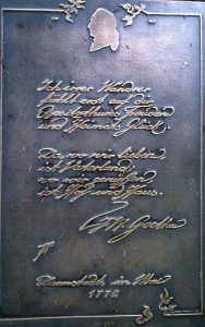 einer Tafel mit einer Goethe-Inschrift, die beim